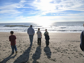 After breakfast the whole clan went to the beach to dip our feet in it for the first time and to pick shells.